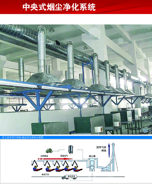 因此,為了生產安全,在車間里安裝煙塵凈化器是非常有必要的,而與小型、分散的單體煙塵凈化器相比,大型的中央式煙塵凈化系統更于適合大空間整體工作場所的粉塵收集處理,車間操作工位可以同時使用,風量也可達到單機的數倍,能夠快速凈化車間的工作環境。不僅如此,由于中央式